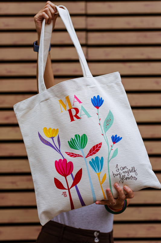 COVERS – Bolsa Blanca "Flowers" Ponle tu nombre y llévala con estilo, actitud y una...