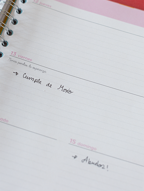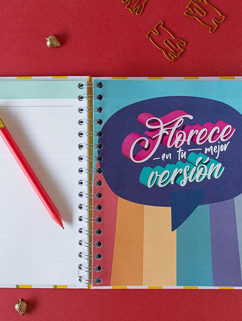 Con colores vibrantes, interiores radiantes y mensajes que te abrazan y te impulsan, esta agenda se convierte en tu espacio favorito para organizarte, soñar y agradecer.