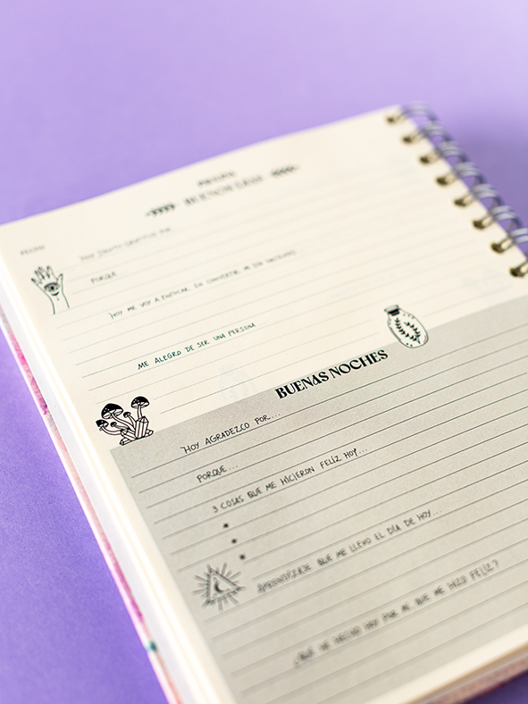 Empieza y termina tus días con intención, amor y gratitud. Este diario está diseñado especialmente para acompañarte en tus rituales diarios, con espacio para agradecer cada mañana y cada noche.